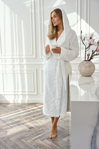 Albornoz de señora 2551 Amira L&L frambuesa - largo con capucha | Elegancia y confort