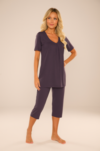 878 Dahlia Pijama de señora De Lafense - viscosa, manga corta, pantalón 3/4 - denim