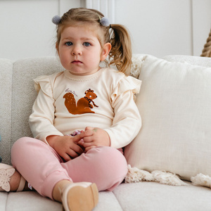 Fluffy Tails Eevi blusa acanalada para bebé - rosa, con volantes en los hombros