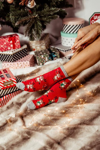 1290.039 Calcetines de Navidad Reno Milena - No emparejar, rojo