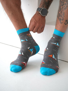 Milena -045 Calcetines 3/4 Velero Avangard gris- Calcetines de hombre de algodón con estampado náutico