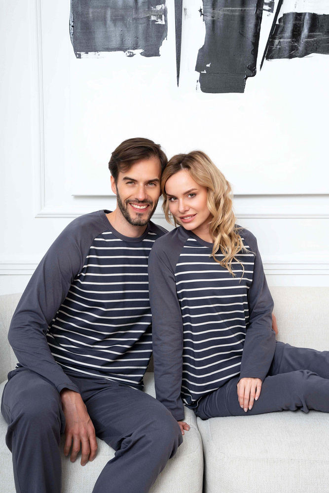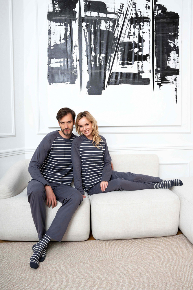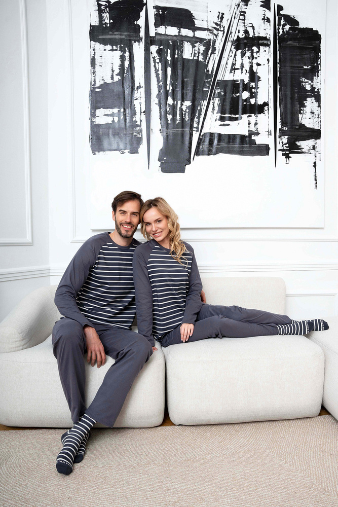Este clásico pijama de algodón para hombre con un atemporal estampado de rayas es perfecto tanto para casa como para las vacaciones o los viajes de negocios. El tejido ligero y agradable a la piel le garantizará un sueño confortable, mientras que el diseño holgado es una garantía de libertad y comodidad. Estos pijamas de hombre con pantalón largo y manga larga son imprescindibles en el armario de todo caballero al que le guste dormir a pierna suelta. Pijama de hombre 100% algodón disponible en tonos grafito y tallas de la S a la XXL.