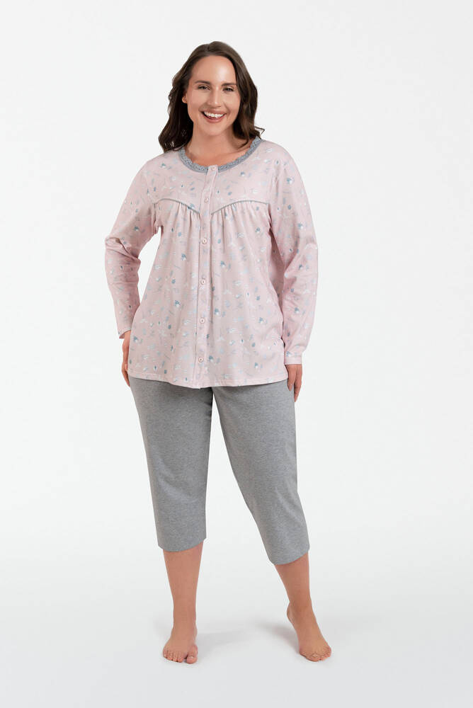 Pijama de mujer Daniela manga larga, pantalón 3/4 Moda Italiana - estampado/melange