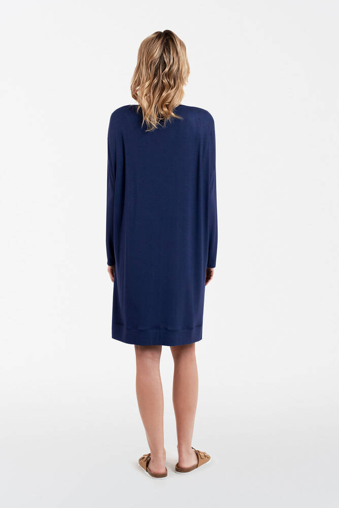 Una túnica es la prenda perfecta para cualquier ocasión: siempre a la moda, siempre elegante y con clase. Esta moderna túnica de mujer, confeccionada en un 90% de viscosa cepillada y un 10% de elastano, es ideal como camisa de dormir y como prenda de estar por casa. De corte recto, escote barco y largo hasta la rodilla, sienta bien a cualquier tipo de figura. La elegante túnica de mujer está disponible en las tallas S a XXL, en dos opciones de color.