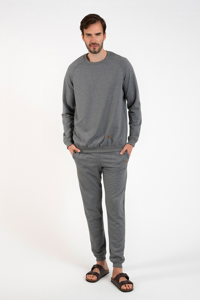Un chándal cómodo es la prenda perfecta tanto para las actividades deportivas como para las tardes en casa. Este conjunto de moda para hombre funcionará en cualquier circunstancia. Mangas de Reglan y corte recto para un look elegante y libertad de movimientos. La sudadera del conjunto masculino es completamente lisa, sin bolsillos, y está rematada con bajos y mangas de canalé, al igual que los bajos del pantalón, que incorporan bolsillos. También llevan parches discretos y a la moda. Este elegante conjunto de chándal para hombre está confeccionado con un 95% de algodón y un 5% de elastano, por lo que resulta agradable y suave al tacto. Está disponible en tallas de la S a la XXL y en colores negro y gris melange.