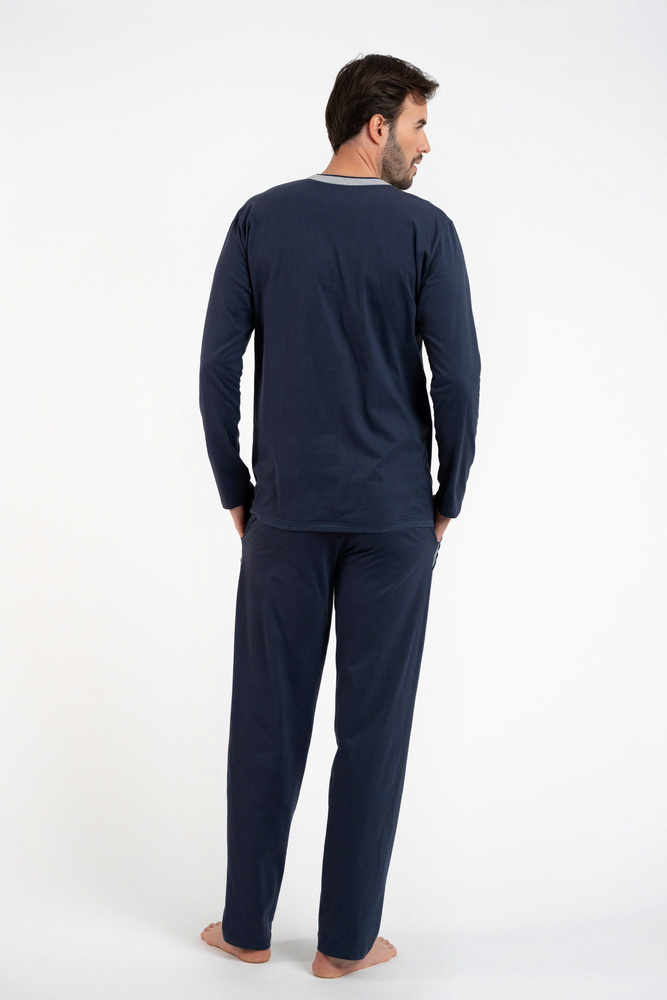 Zbyszek Pijama Hombre manga larga, pantalón largo Talian Fashion - azul marino