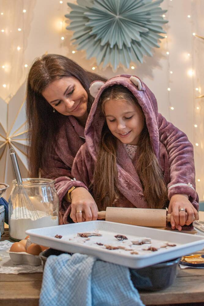 El albornoz Serena tiene un corte recto y está provisto de una cómoda capucha, que también protegerá tu cabeza del frío después de la