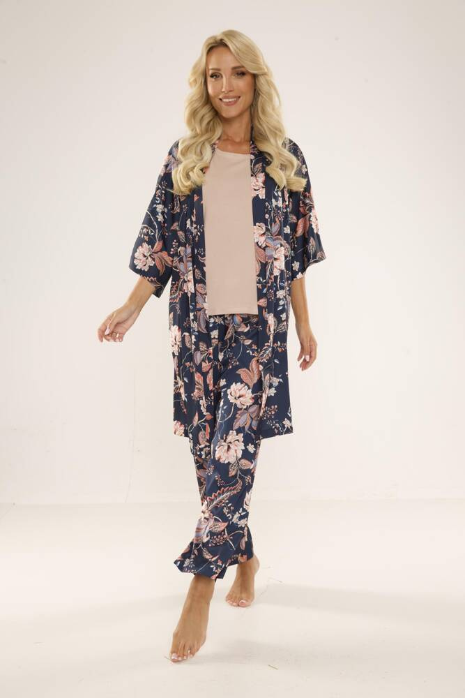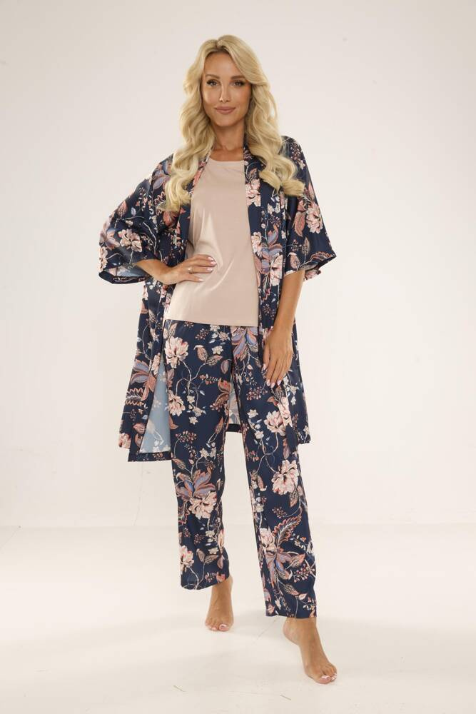 Cómodo y encantador conjunto de satén compuesto por una blusa y un pantalón. Blusa de manga corta y escote redondo. Pantalones largos, estampados. Zestán cortados de tal forma que resultan cómodos de llevar y, al mismo tiempo, realzan las curvas de las nalgas de forma sexy.