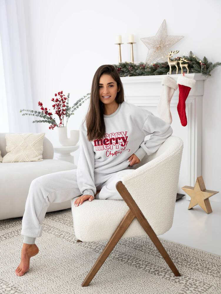 Camiseta de manga larga , parte delantera con bordado decorativo invernal Merry Christmas.