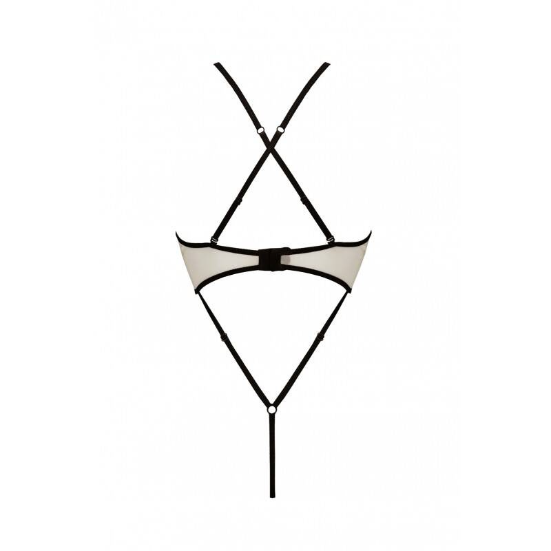 Fantástica combinación de blanco con detalles en negro. Este insólito body, de gran corte, moldea tu silueta y te hace sentir extremadamente sexy. Escote adornado y espalda al descubierto. El escalón abierto añade carácter.