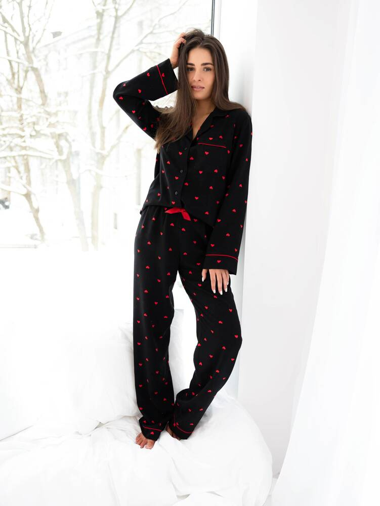 Pijama de señora con forma de corazón de viscosa de alta calidad. Blusa de cuello abierto.