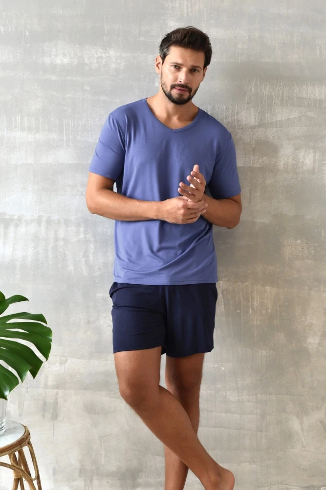 Dallas Pijama de manga corta para hombre, pantalón corto Italian Fashion- azul