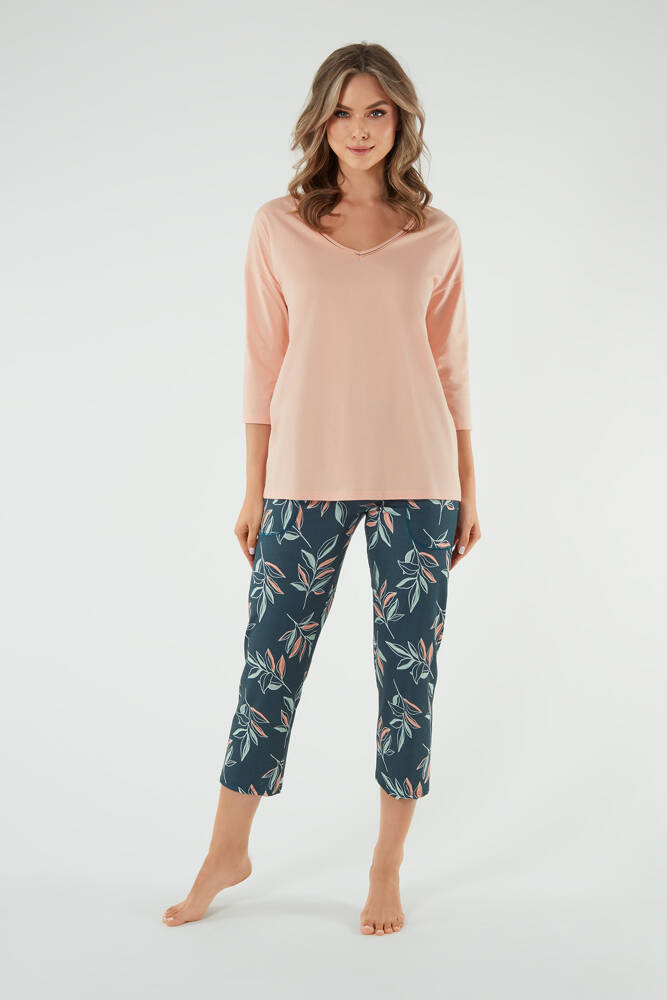Julietta Pijama señora manga 3/4, pantalón 7/8 Moda Italiana - salmón/estampado