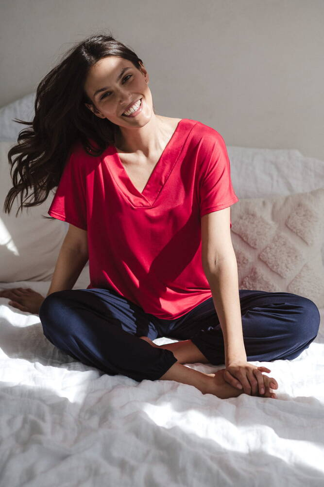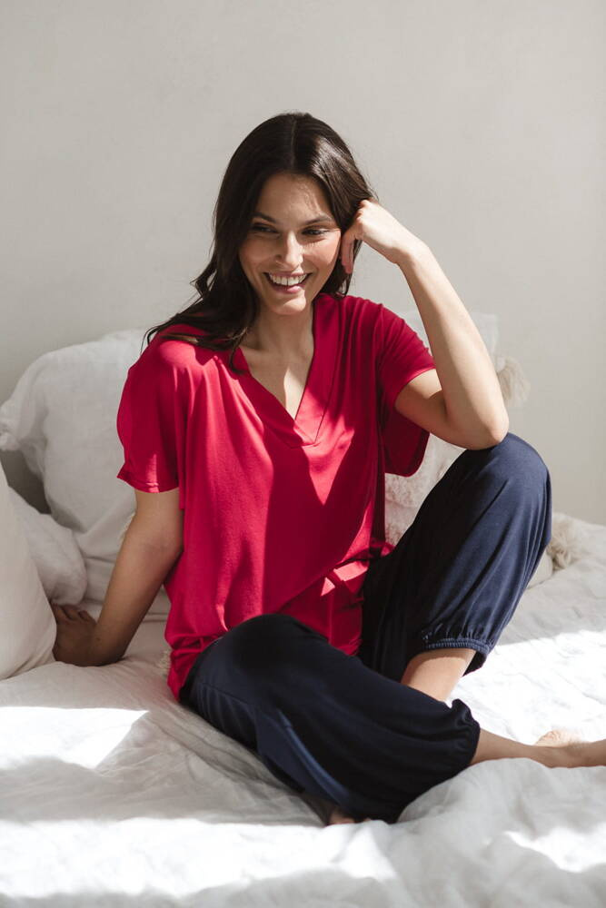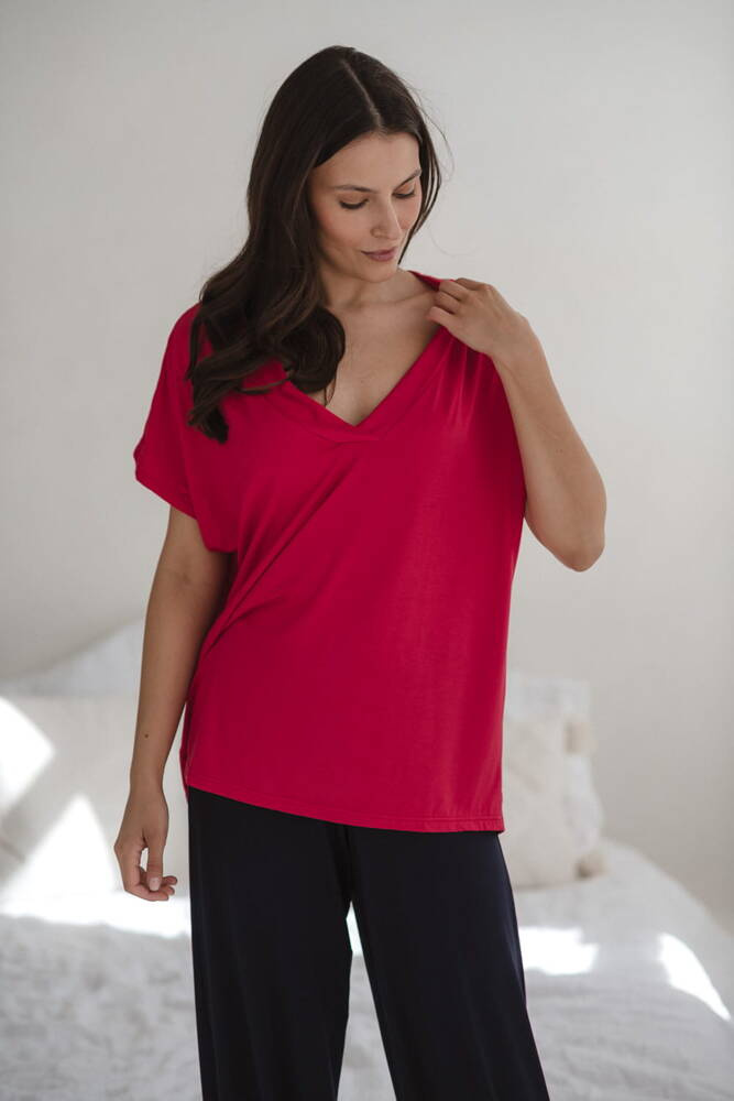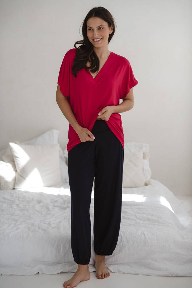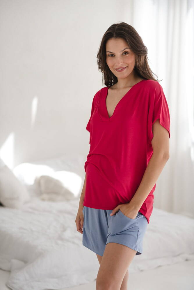 Moon bambusowa bluzka od piżamy ciążowej do karmienia krótki rękaw Milk&Love malinowy
