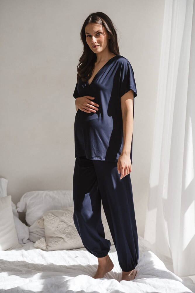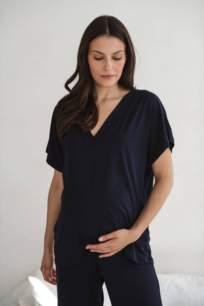 Moon bambusowa bluzka od piżamy ciążowej do karmienia krótki rękaw Milk&Love granatowy