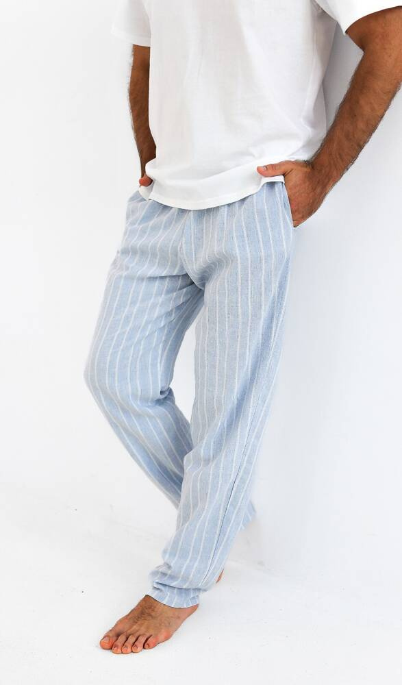 Cómodo y práctico pijama de caballero de algodón de alta calidad. Camiseta de manga corta. Completa con pantalones largos estampados. Cómoda cintura elástica. Modelo con bolsillos.