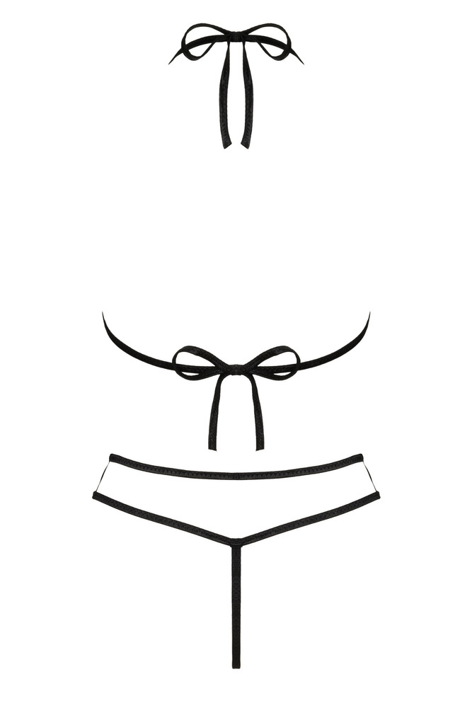 El conjunto Jimena se compone de sujetador y tanga a juego. Las cintas negras realzan aún más su carácter seductor.