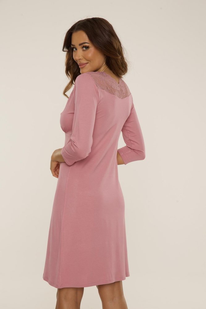 Elegante camiseta de manga larga para mujer. Modelo realizado en seda viscosa de alta calidad. Escote y espalda decorados con encaje con motivos florales. Atraerá a las mujeres amantes de la suavidad y la libertad.