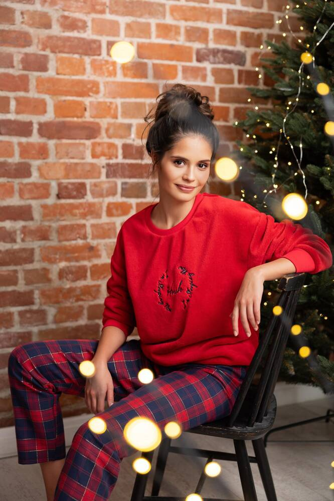 Pijama cálido de señora, camiseta de manga larga en suave tejido de punto.