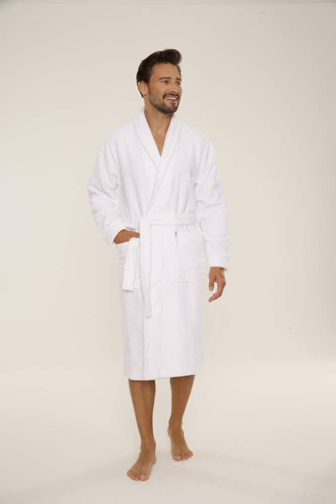 - Albornoz de hombrelargo, cuello, bolsillos.Atado a la cintura,Tejido de rizoFabricante polaco