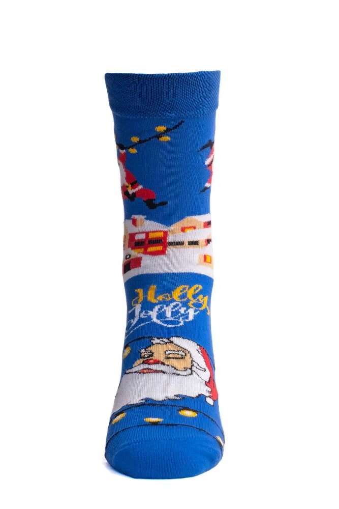 Calcetines de Navidad con una imagen de Papá Noel y deseos navideños "Holly Jolly"