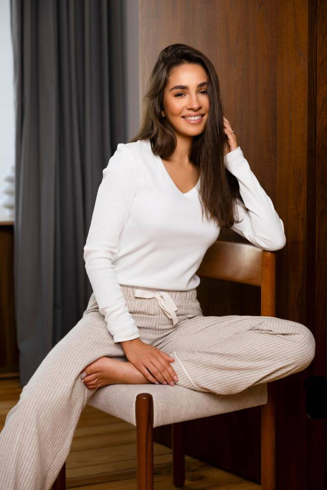 Pijama de señora de algodón de alta calidad. Camiseta de manga larga, escote en V.