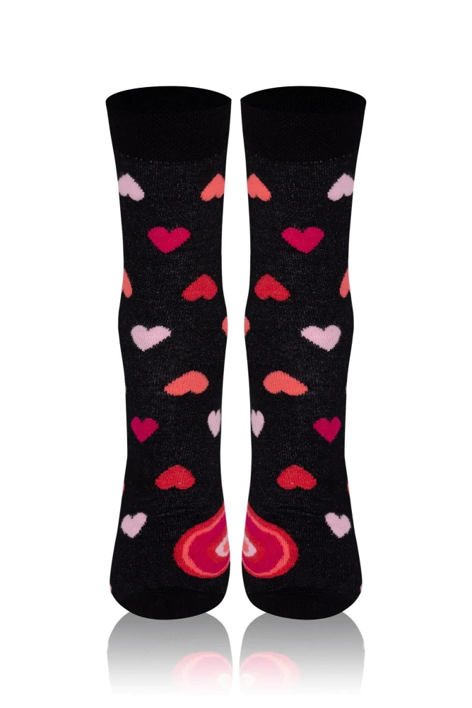 Los calcetines son la esencia de la comodidad y el estilo. Hechas de algodón, por lo que son agradables al tacto y cómodas de llevar. Un modelo "fuera de serie", decorado con motivos de San Valentín.