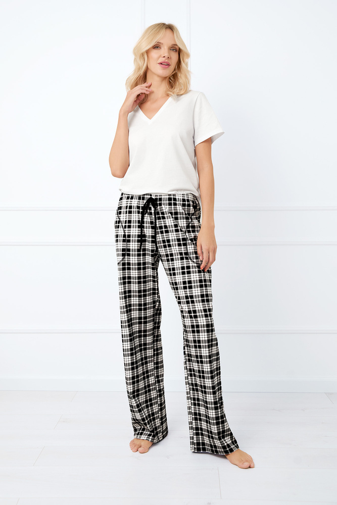 Pantalones largos de pijama para mujer diseñados para ofrecer comodidad mientras duermes y te relajas. Con un corte clásico y relajado. Cintura elástica sin presiones con cordón decorativo. Toda la prenda está adornada con un estampado de cuadros y confeccionada en algodón suave y transpirable, ideal para todas las estaciones.