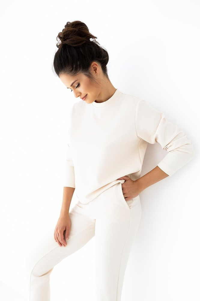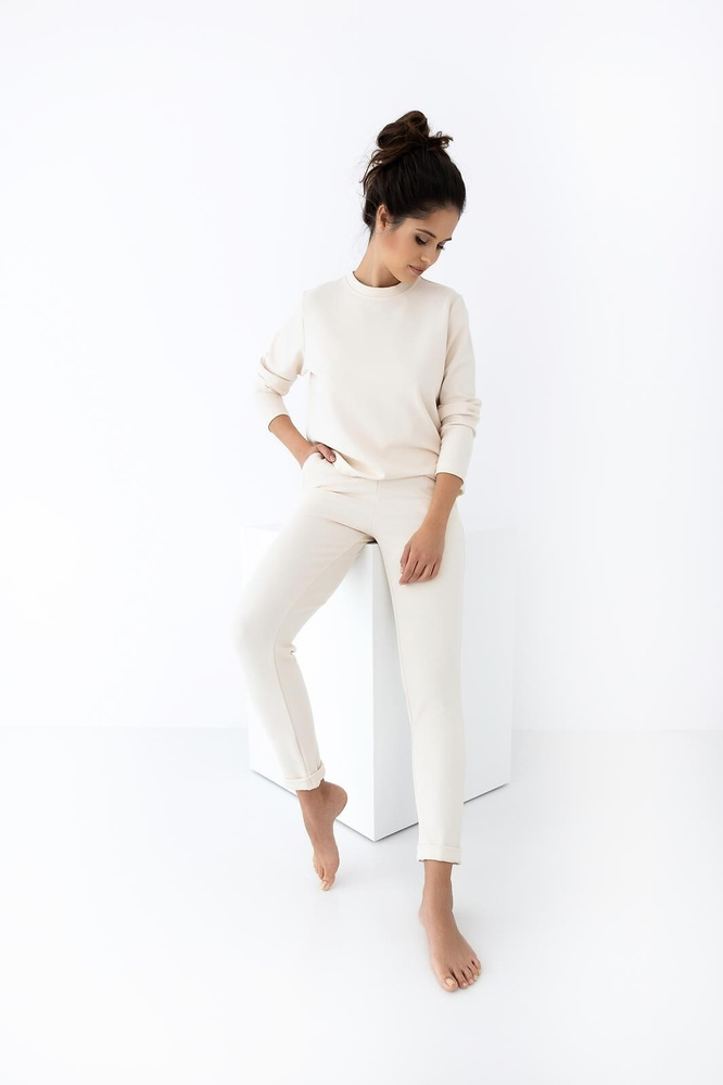 Pijama - chándal de señora de punto de alta calidad. Sudadera lisa de manga larga. Cintura y puños de canalé. Pantalón largo y liso con bolsillos, acabado con puño vuelto .