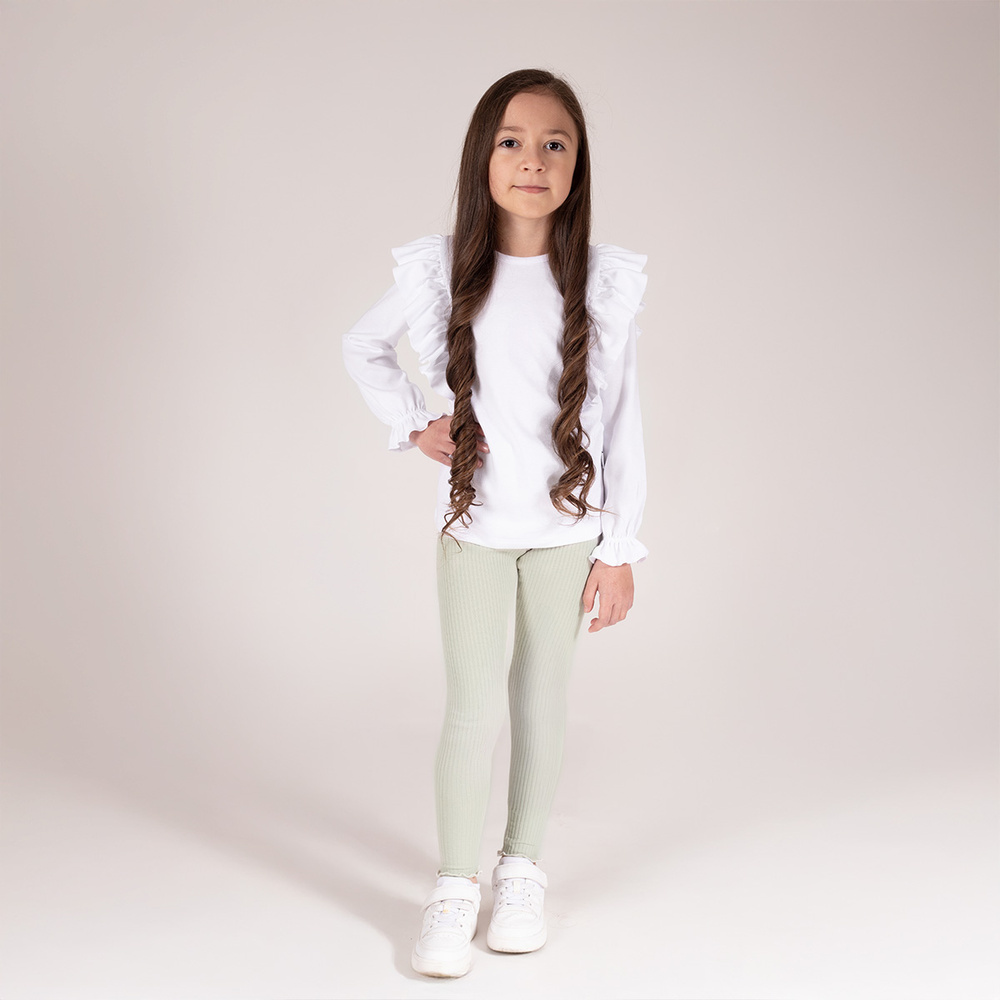 141525 Mallas de canalé para niña Nicol - algodón con elastano, volante, verde oliva