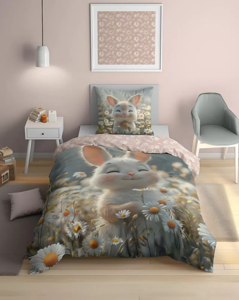 5548 A Fluo 95 Ropa de cama conejito luminoso en flores 100% algodón | Para niños Detexpol