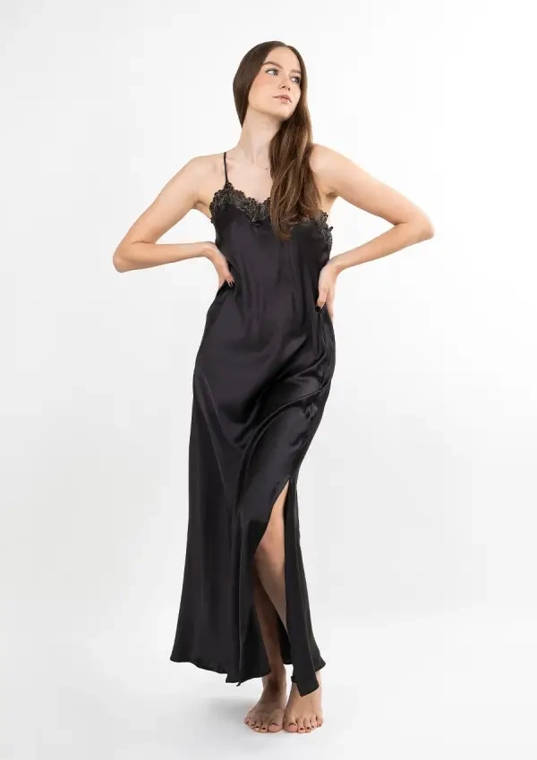 Por qué elegir un resbalón Dkaren? ✅ Satén suave y brillante, agradable para la piel ✅ Corte largo y elegante ✅ Tirantes ajustables: ajuste perfecto ✅ Color negro clásico ✅ Marca polaca - alta calidad y mano de obra de precisión