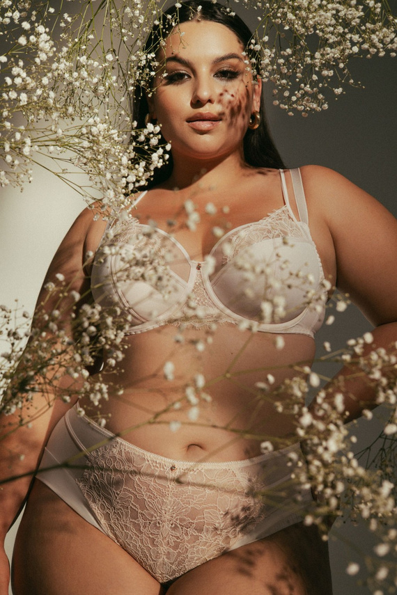 Copas del tipo semiblando (semiacolchadas) moldean perfectamente el busto, proporcionando una forma natural y una sujeción óptima. La parte inferior de la copa está suavemente acolchada, mientras que la superior está confeccionada con un bonito encaje ligeramente transparente, que añade un toque romántico al conjunto.