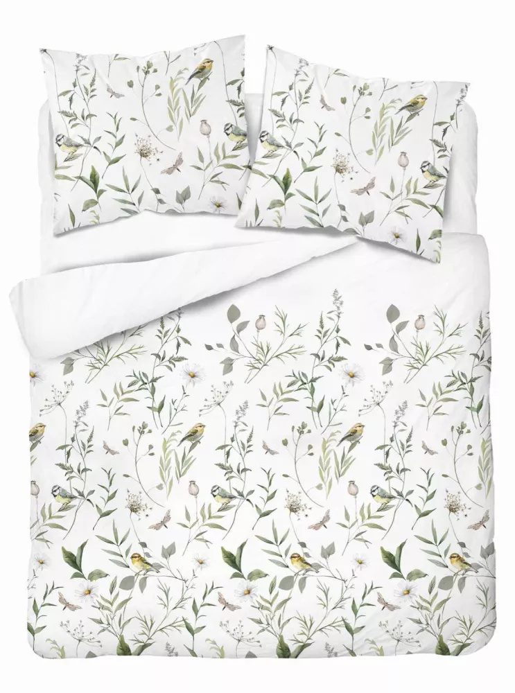 5500 A Ropa de cama de algodón blanco con ramas verdes y pájaro Naturalis- Detexpol