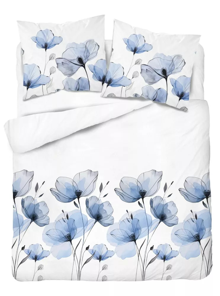5496 A Ropa de cama de algodón blanco con flores azules acuarela Naturalis- Detexpol