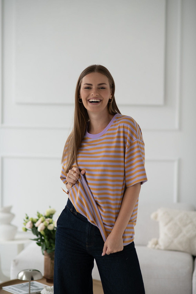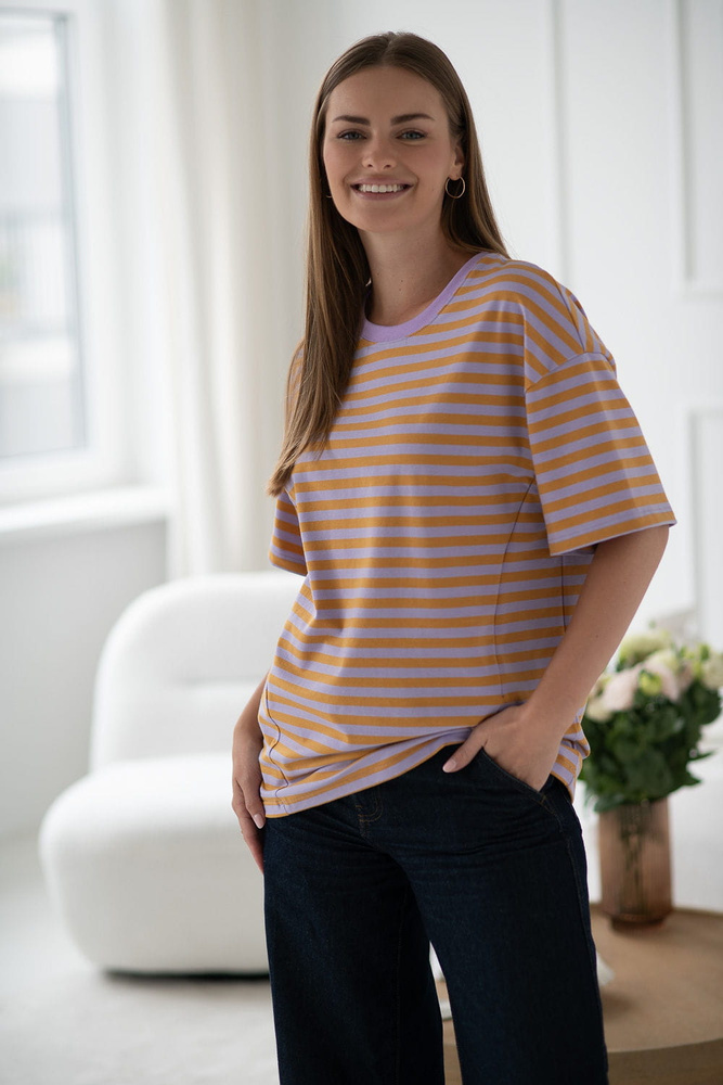 Mamahood Camiseta de embarazo y lactancia Milk&Love a rayas miel y lila - cómoda y elegante