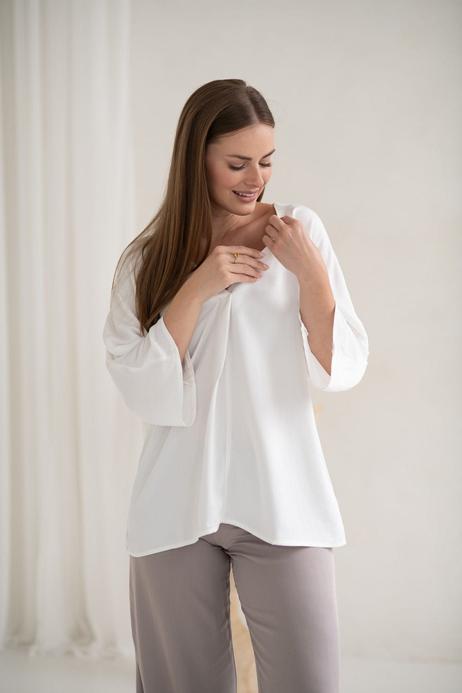 Mamafullness Blusa de lactancia Milk&Love blanca - viscosa, manga 3/4, oversize