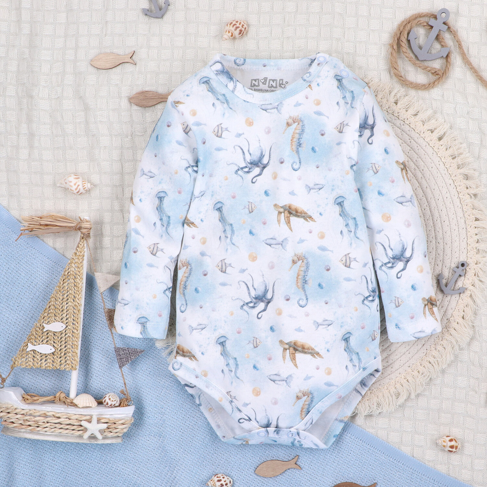 • Body para bebé Nini Sea Of Joy - 100% algodón orgánico, manga larga, cómodo cierre con botones a presión.