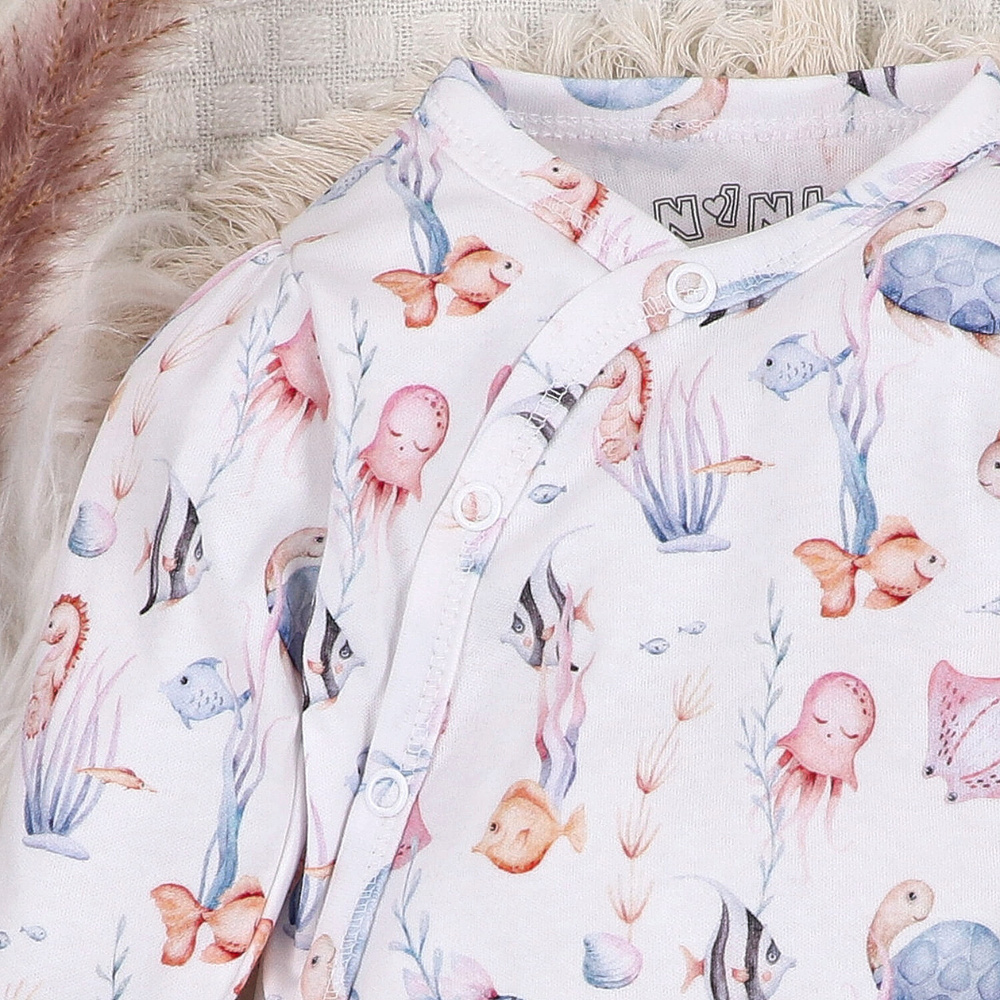 - Nini body Underwater World – 100% bawełna organiczna, kopertowy krój, wygodne napy.