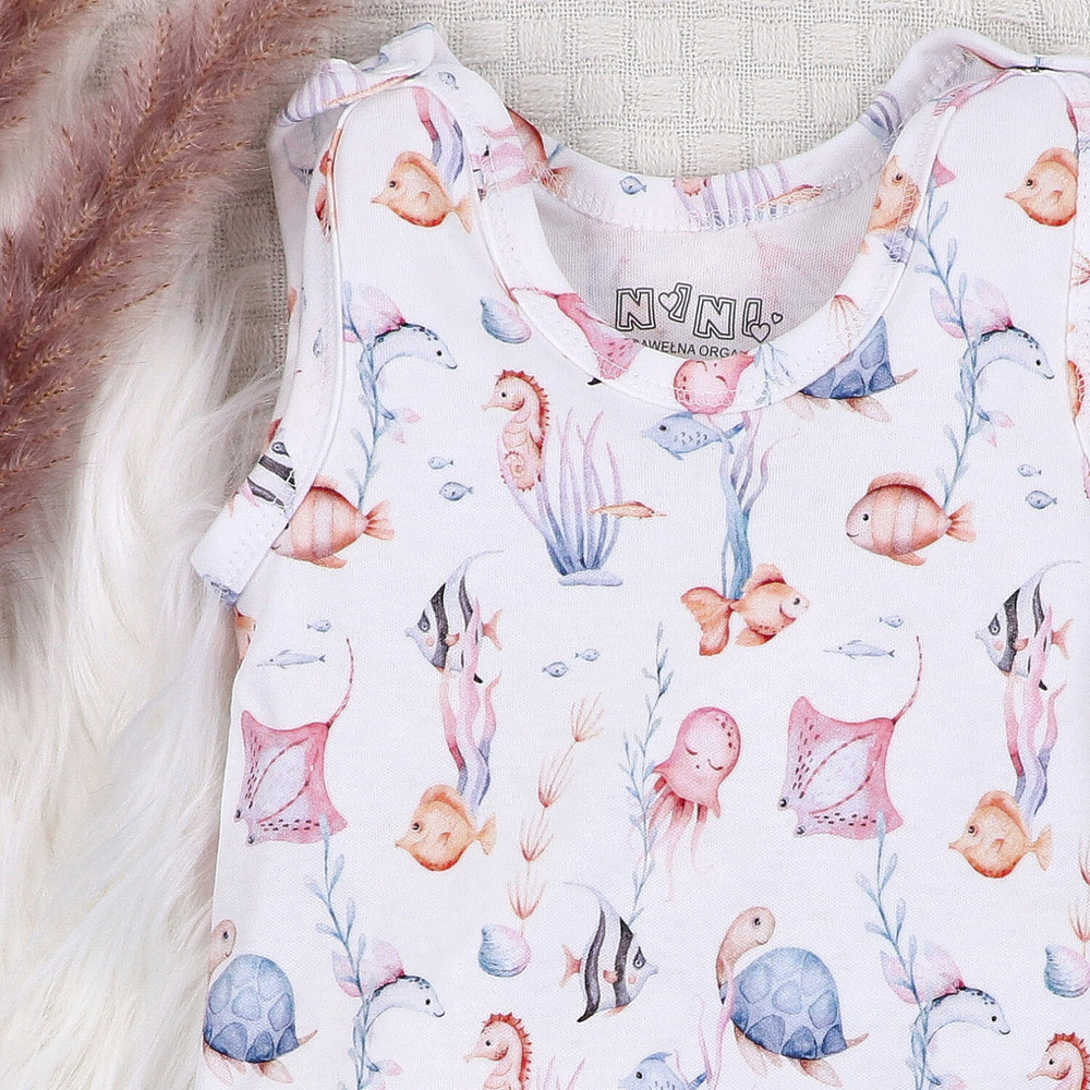 - Nini śpiochy Underwater World – 100% bawełna organiczna, zabudowane stópki, wygodne napy.