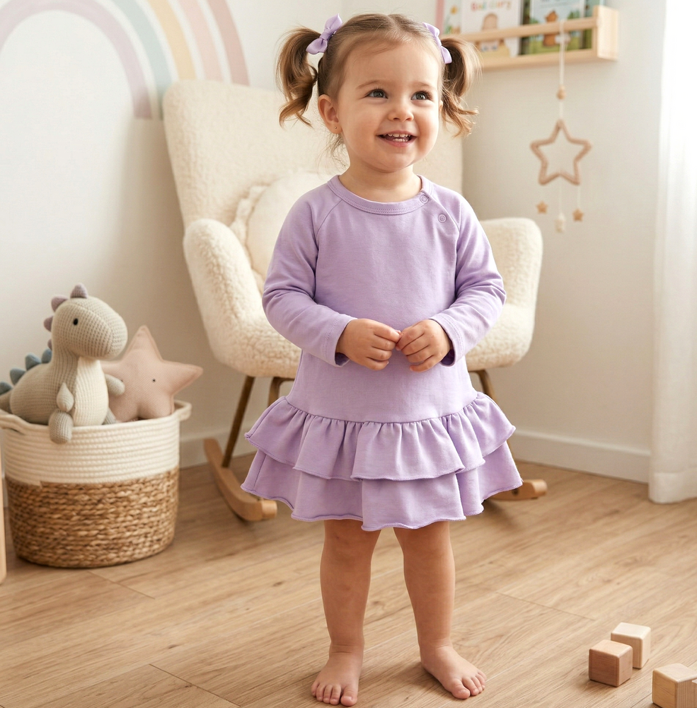 - Nini sukienka Underwater World – 100% bawełna organiczna, fioletowa, długi rękaw, miękka.