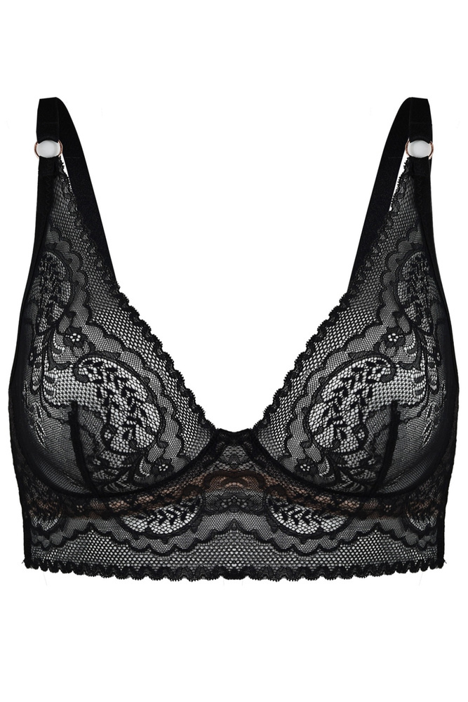 19236 Feel Mediolano Bralette Largo Negro - sujetador de encaje con banda extendida