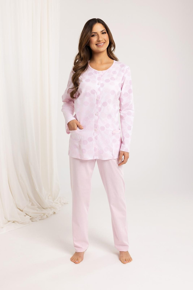 710 Pijama señora Regina rosa - algodón, manga larga, botones, confort clásico