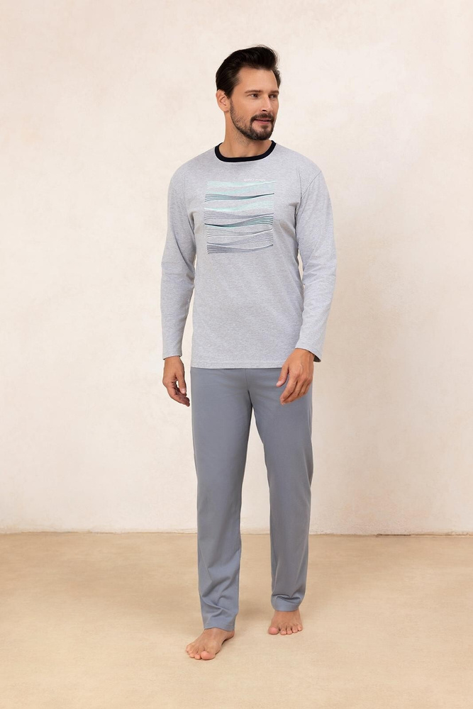 Regina 492 gris - pijama de algodón de manga larga para hombre, corte clásico