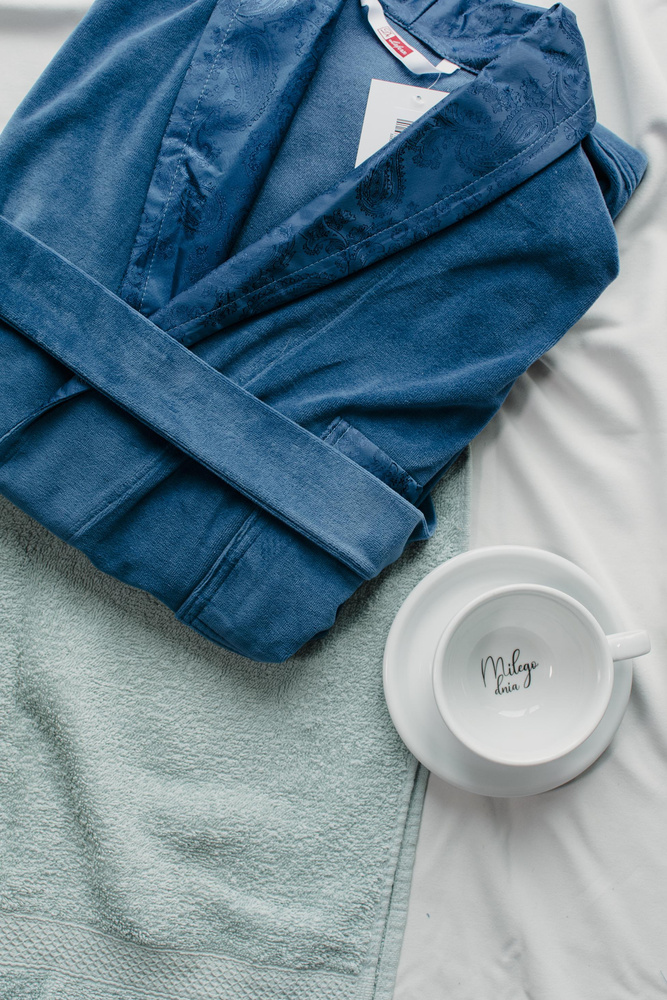 • Exclusiva bata de caballero en suave terciopelo. Noble 866: perfecto para las mañanas frescas y para relajarse con estilo.