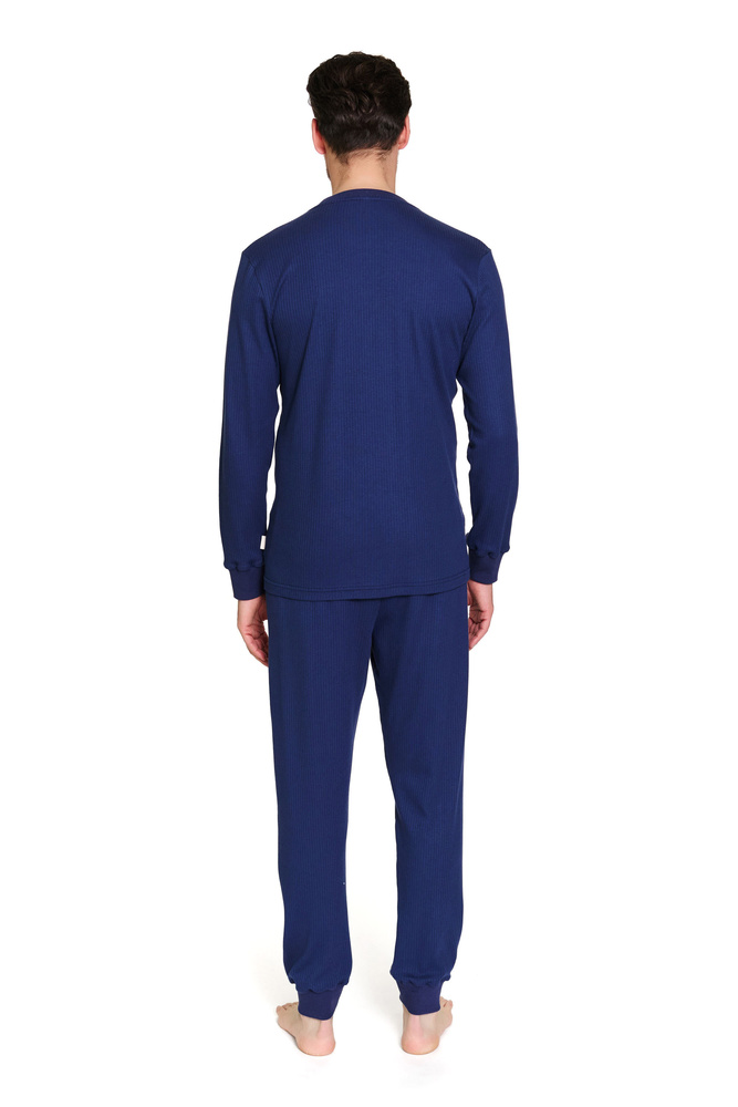 El modelo 7350 de Doctor Nap es un pijama clásico para hombre confeccionado en un agradable tejido de punto de algodón acanalado. La camiseta de manga larga con escote redondo se adapta perfectamente al cuerpo, mientras que el pantalón con cordón no se enrolla al dormir. Es ideal para el otoño, el invierno y las noches frías. Su corte sencillo y elegante es ideal tanto para el hogar como para el equipo familiar (disponible en versión para mujer y para niño).