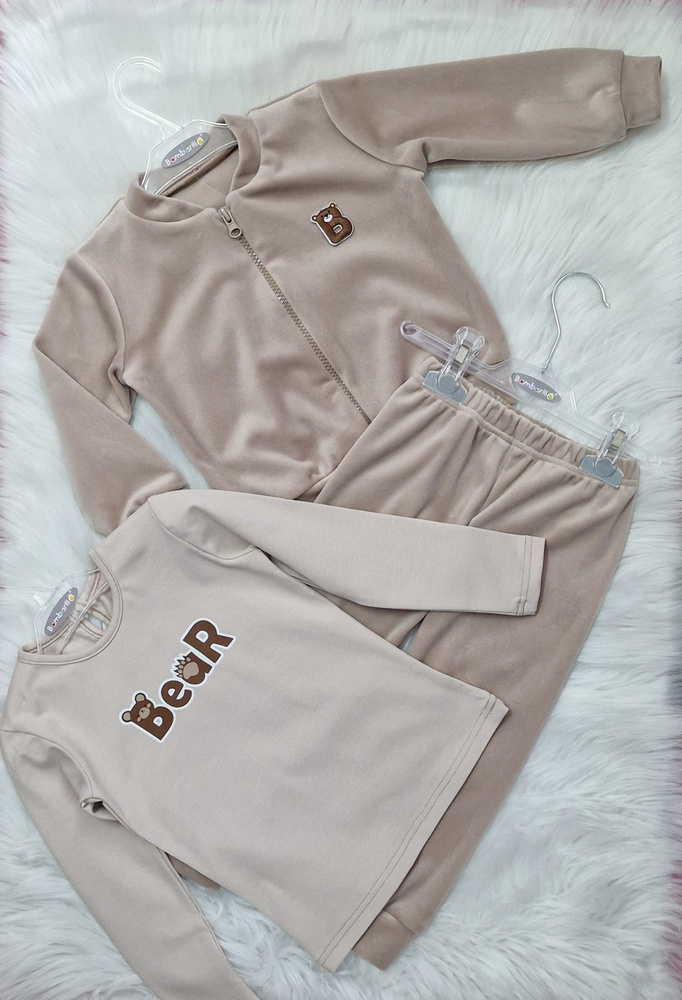 Oso terciopelo chándal niño Bambarillo beige | Conjunto suave