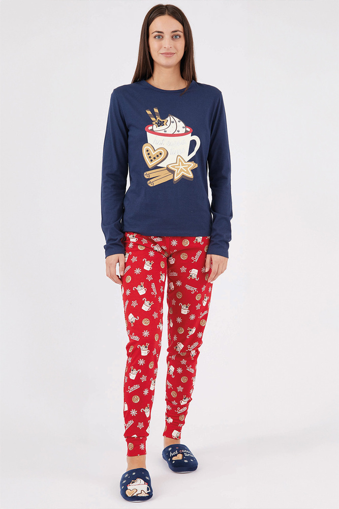 Natalie Sorbetto es un pijama festivo para mujer que combina comodidad, calidez y un aire invernal. Fabricada en punto de algodón 100% natural, proporciona comodidad en las noches y mañanas frescas.