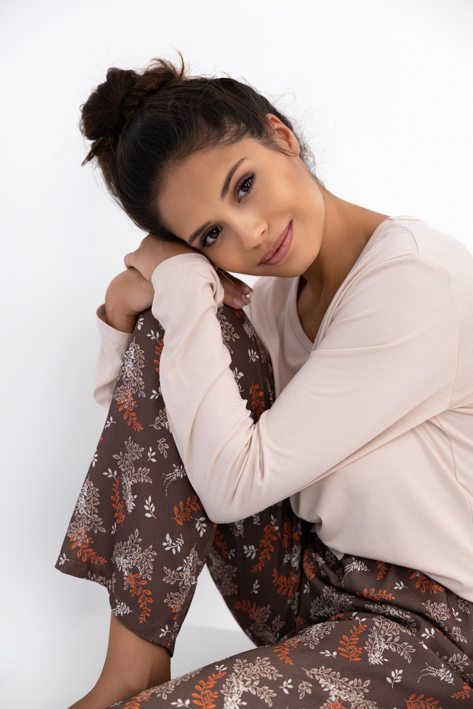 Pijama de mujer Shelby Sensis - viscosa, camiseta de manga larga y pantalón estampado