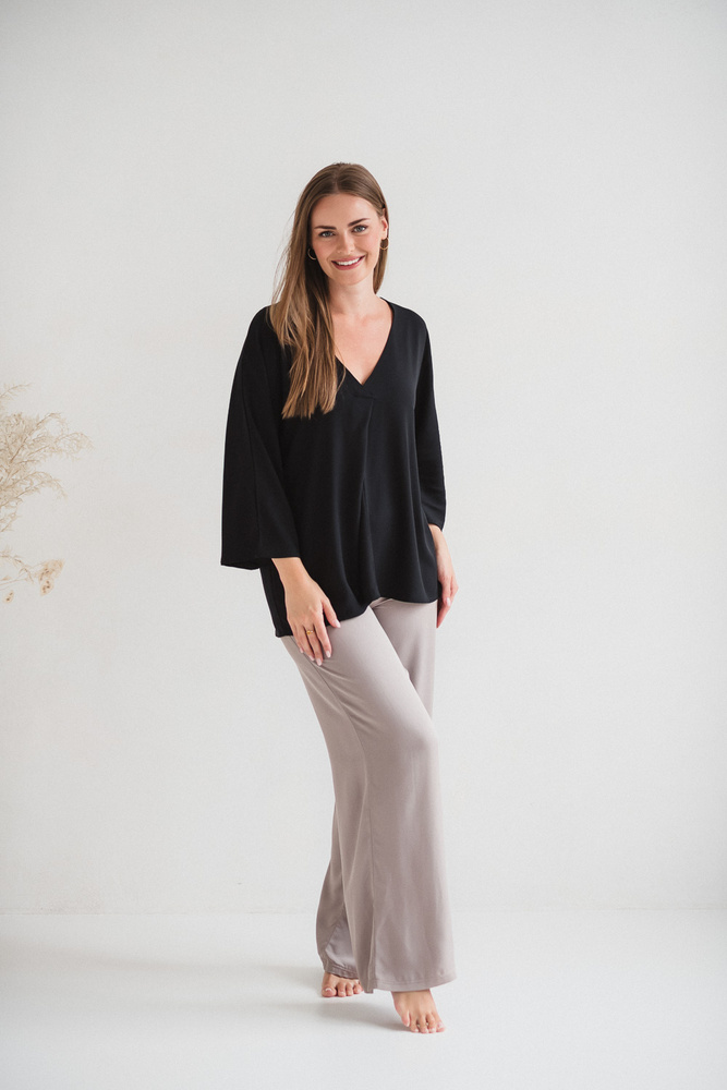 Mamafullness Blusa de embarazada para lactancia Milk&Love negra- viscosa, manga 3/4, oversize